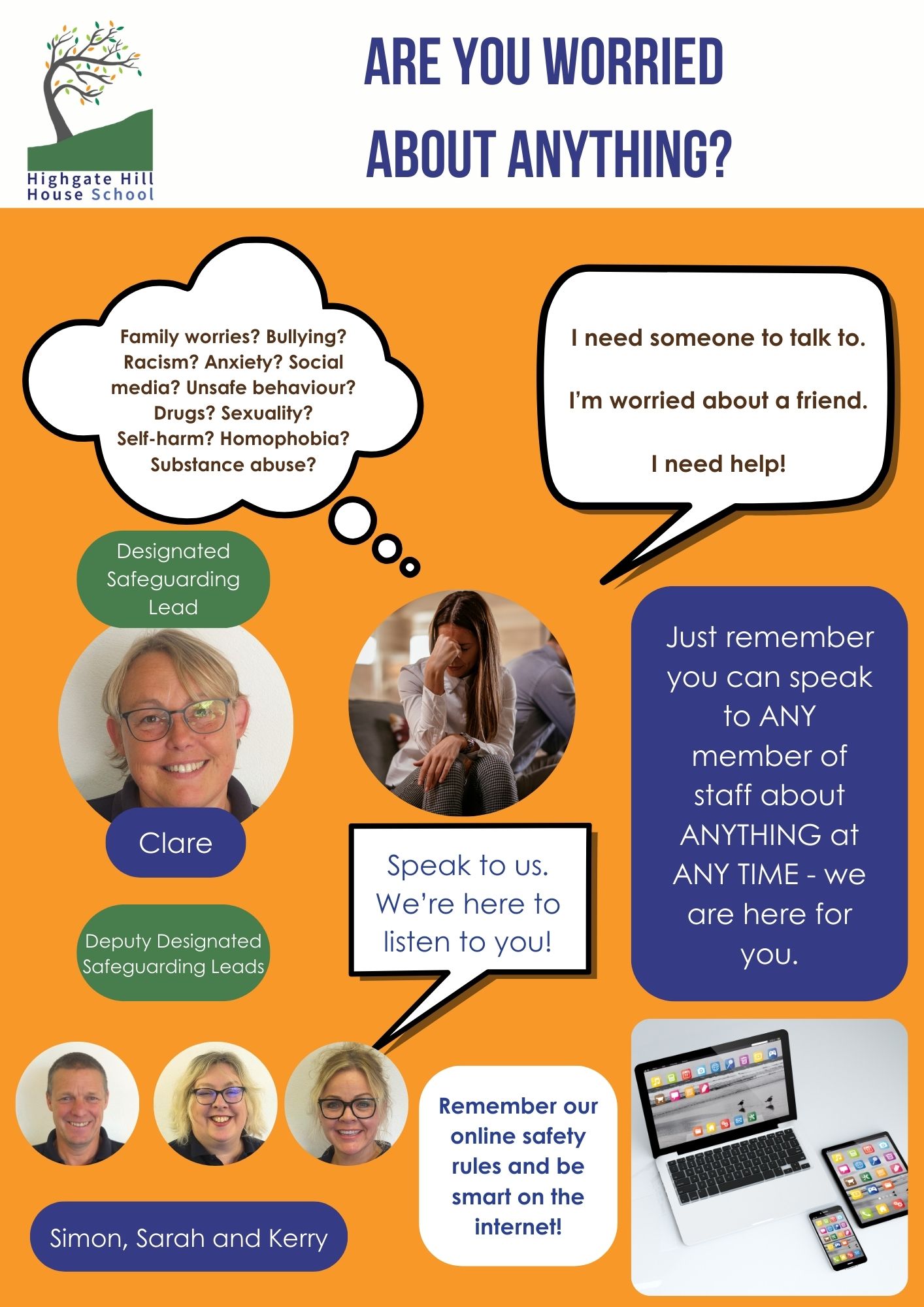 - You can talk to any adult in the school about anything. Do not keep your concerns to yourself; nothing is too small or too big.